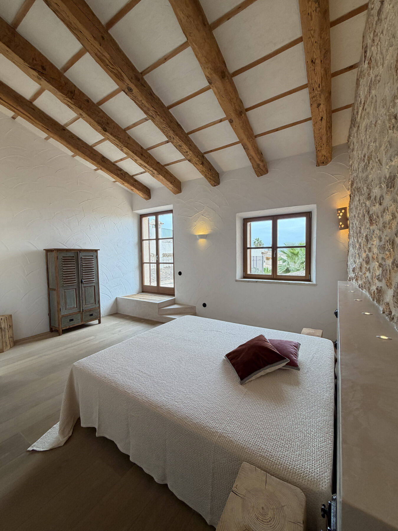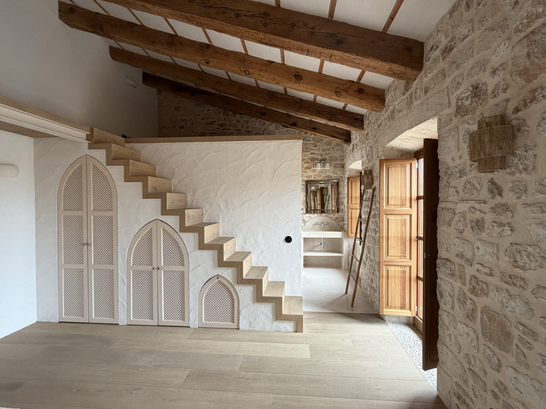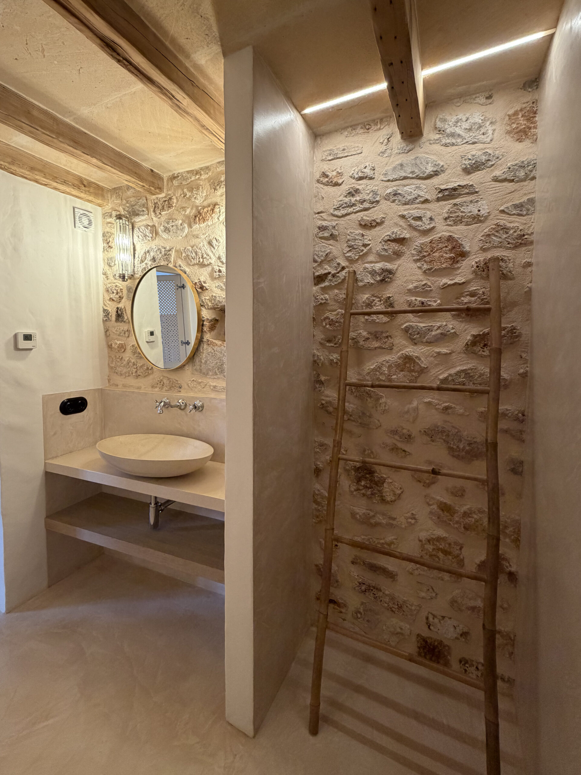 Maintaing the structure of the original house.. the arches and open doors with frames made of big local stones..